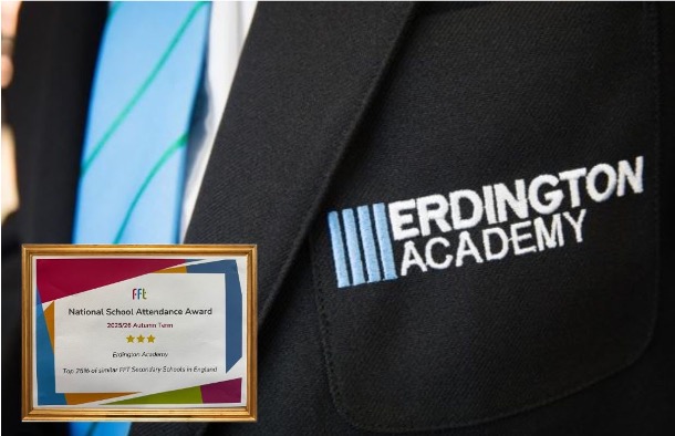 Erdington Academy was also awarded a Bronze Award for attendance in 2025 and are now being assessed for the Silver Award.